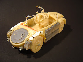 bonjour à tous, voici le montage de la sahariana de chez crielmodel au 1/35. Ce kit est relativement ancien, il n'est même plus au catalogue, et est représentatif des anciennes productions de l'artisan italien. C'est à dire une résine très grasse de mauvaise qualité, certaines petites pièces inutilisables. Il faut tout de même dire qu'à l'heure actuelle, cela n'est absolument plus le cas (voir la lancia 1ZM et la daimler). Mais c'était à l'époque le seul à proposer une sahariana à cette échelle, donc.... et puis avec un peu de travail, il était possible d'obtenir un modèle honorable.