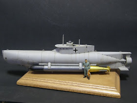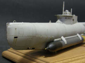 Apparently there were several types of Seehund with minor differences, so I decided to plug in the front of the periscope and add handles on the sides of the access door.