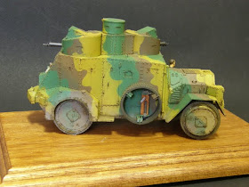 I found more original to attempt a Reichswehr's Daimler in the thirties delivered in three colors characteristic of the period. This is probably a historical mistake because these vehicles were employed in urban security, they were more likely to be solid-color gray probably, but .... These three colors are the same as the Wehrmacht will use later but with different nuances. Indeed, the yellow sand is more yellow mustard, green is slightly darker, while the brown is quite black (not enough for my taste on my model). All colors used are Tamiya references. For yellow, I used the yellow desert XF59 reference to which I added a touch of pure yellow XF3. For green, I used the reference XF26 with a touch of X5. For the brown, I used the reference XF64 with a touch of black.