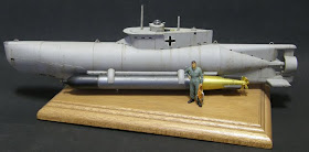 Il semblerait qu'il y ait eu plusieurs types de seehund avec des différences mineures, c'est pourquoi j'ai choisi de boucher la partie avant au niveau du périscope et de rajouter des poignées sur les cotés de la trappe d'accès.