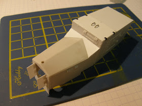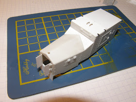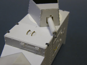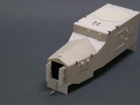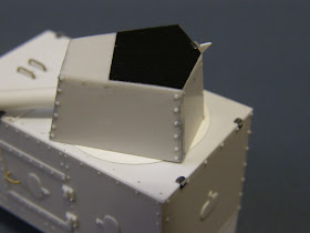 I also drilled the hole for the radiator cap and assembled the front hatches open with hinges recovered from the kit.