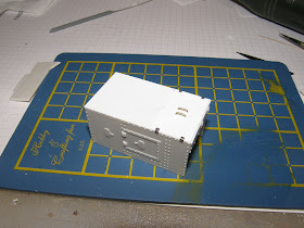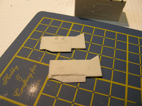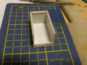 C'est cette pièce qui fait la jonction entre l'avant et la caisse qui pose un problème de jointage, je l'ai donc refait en carte plastique pour pouvoir assembler la partie moteur et le compartiment de combat.
