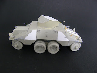 j'ai donc continué le montage de l'adgz avec le train de roulement. Comme je voulais représenter cette automitrailleuse les roues braquées, il a donc fallu reprendre le mécanisme de direction et refaire certaines pièces à l'avant et à l'arrière car les roues avant et arrières sont mobiles.
