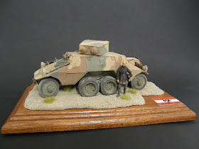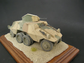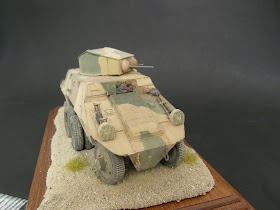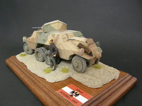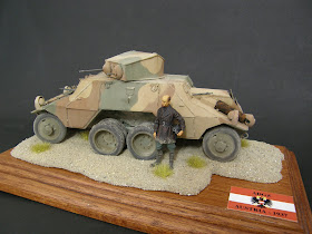 This only indicates that the three-tone camouflage existed. For the green, I think we need to use green-brown described by Mr Ilming it seems logical, so I used the Tamiya XF65 field gray with a drop of red brown Tamiya XF64. For the brown I used Tamiya XF64 with a drop of XF57 buff tamiya not to seem too dark. Finally, for the sand, it seems fairly clear from the pictures, so I used the buff with a drop of green already used. After a coat of primer, the colors were sprayed one after the other starting from the lightest to the darkest and using the dough masking silly putty. Then follow the conventional filters, juice, micropaint, and finally pigments fixed with C gasoline. There is no marking on Austrian vehicles at this period. officer is from the brach models range well known for its quality molding. armored crews wore italian uniforms at this period as shown on photos.
